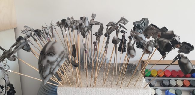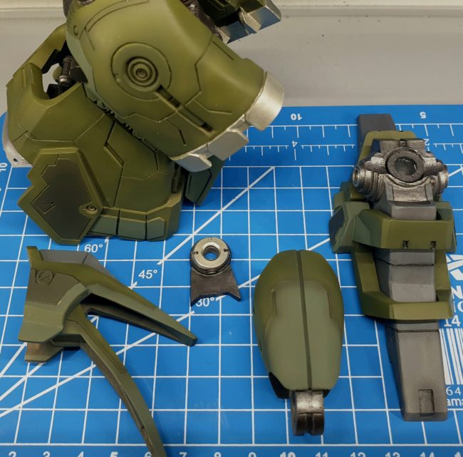 1h of masking and 15 minutes of painting… A bit lighter shade of green applied together with some gray for armor parts Parts combined together – it starting to look just right!!!