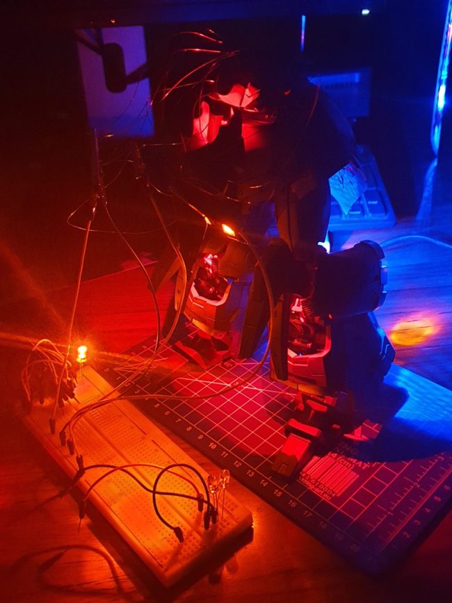 Wiring went fine together with all legs parts combined. A quick way to document circuits 😉 Test power-on! ….sooo many wires!!! Looks super-cool!