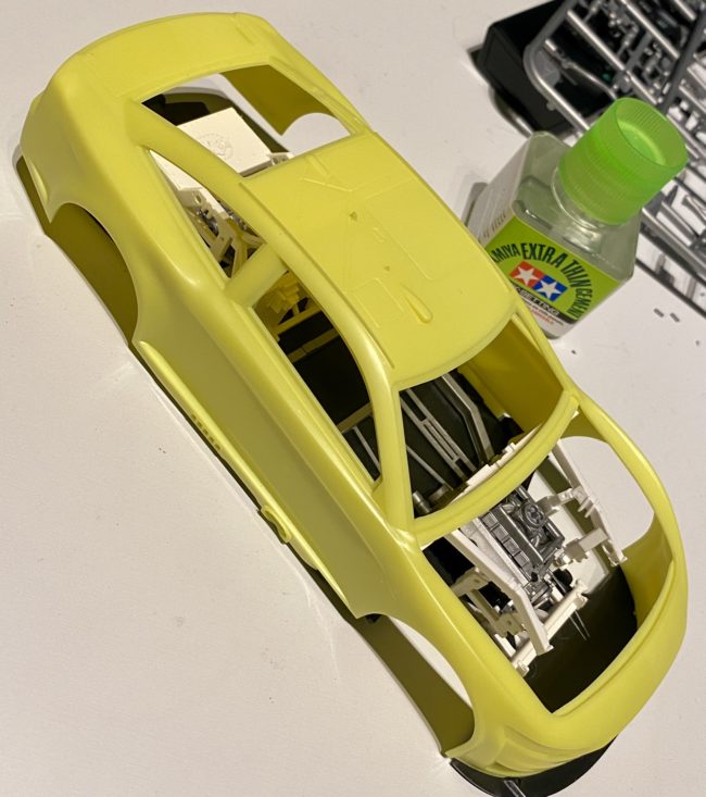 After application of white surfacer a lot of imperfections popped up… I was expeting some but not to that level – it seems like Bandai kits rised the quality bar and I got used to that – SalvinosJr – something to improve 🙂 I painted the engine and transmission with Tamiya laquers. Those combined with…