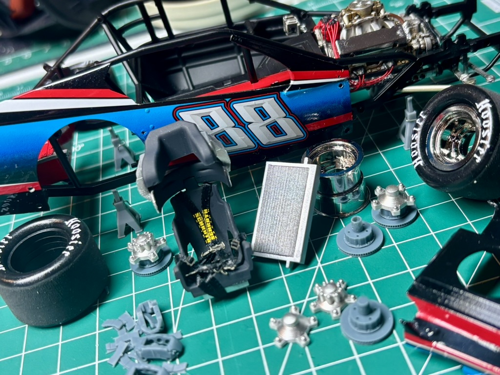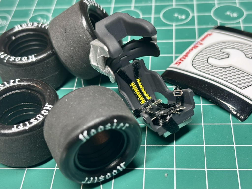 Then, I started to work on the detail – chair was completed. I used 4 point seatbelts set from Scale Production. The tires got Hoosiers decals.