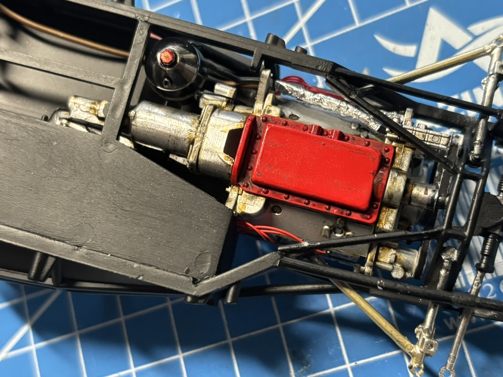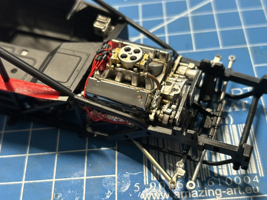 I added fuel line and oil tank with right connection. Based on pictures of the real cars, I added heat insulation.