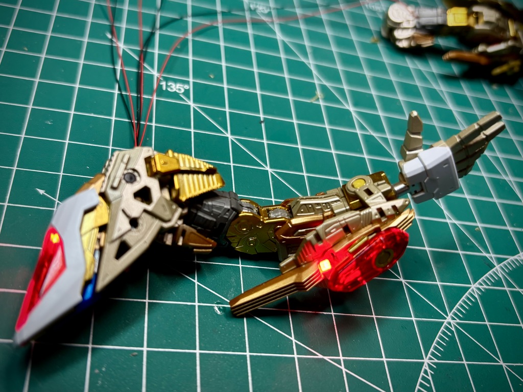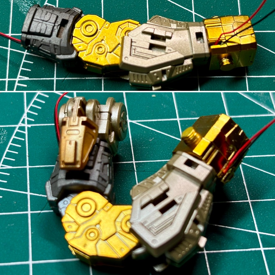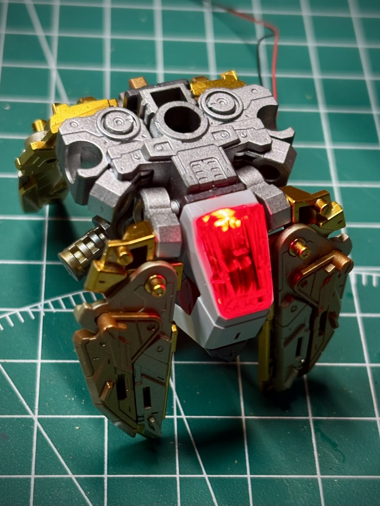 The wires will be hidden under the armor, so I just put them on the innerframe. Completed torso with lights installed looks supercool!