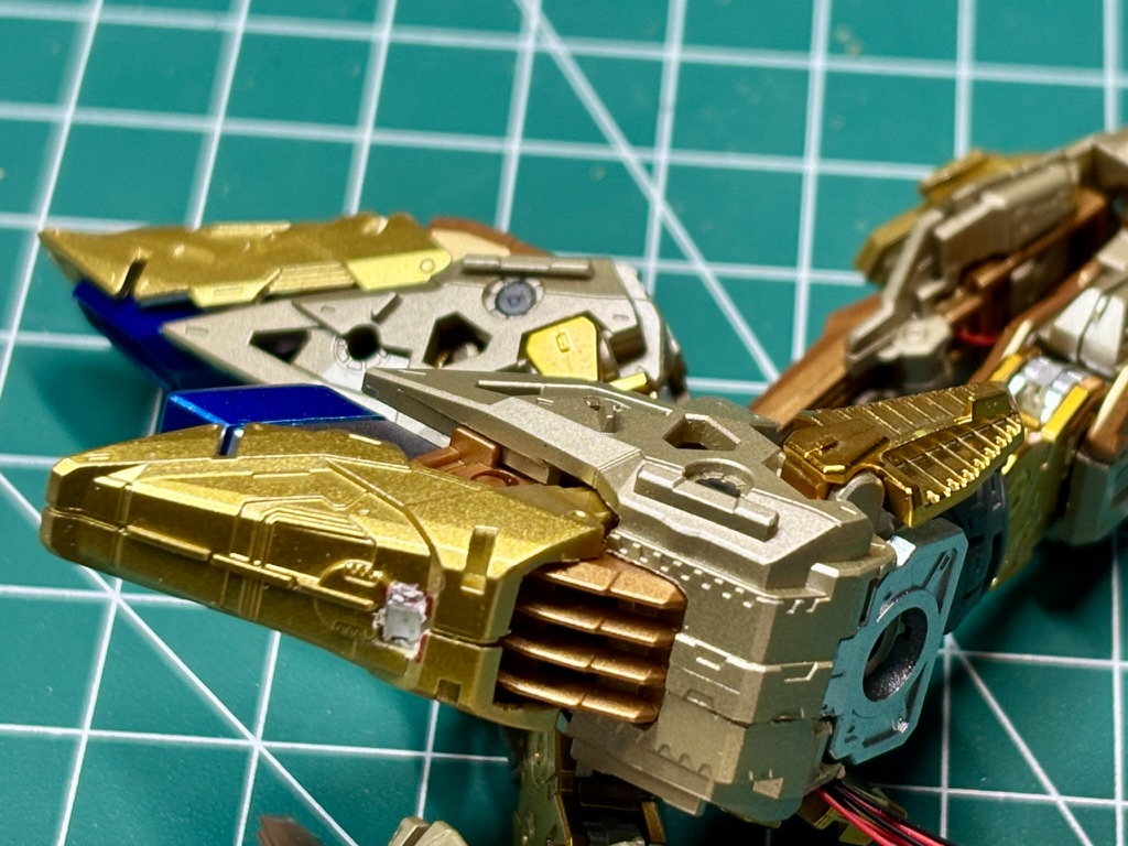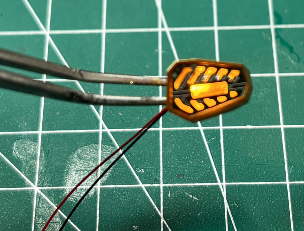 For chests vents (I hope those are vents…) I was planning to add orange LEDs hidden behind the photoetched parts. Some surgery was required to fit small LED in place.