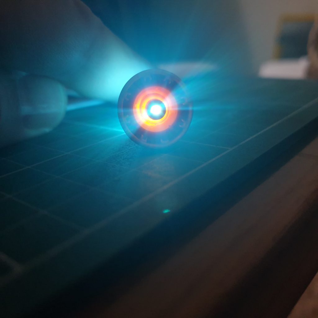 I tried with one 5mm LED and drilled in one of the thrusters – damn… now I need to drill all 12…. Don’t have any idea how to and where I will hide cabling and etc. – will think about it later – at the moment decision is taken – there will be light 🙂