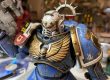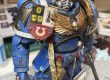 I found in my WH40k bit-box nice resin ultramarine aquila that fit the leg beautifully!