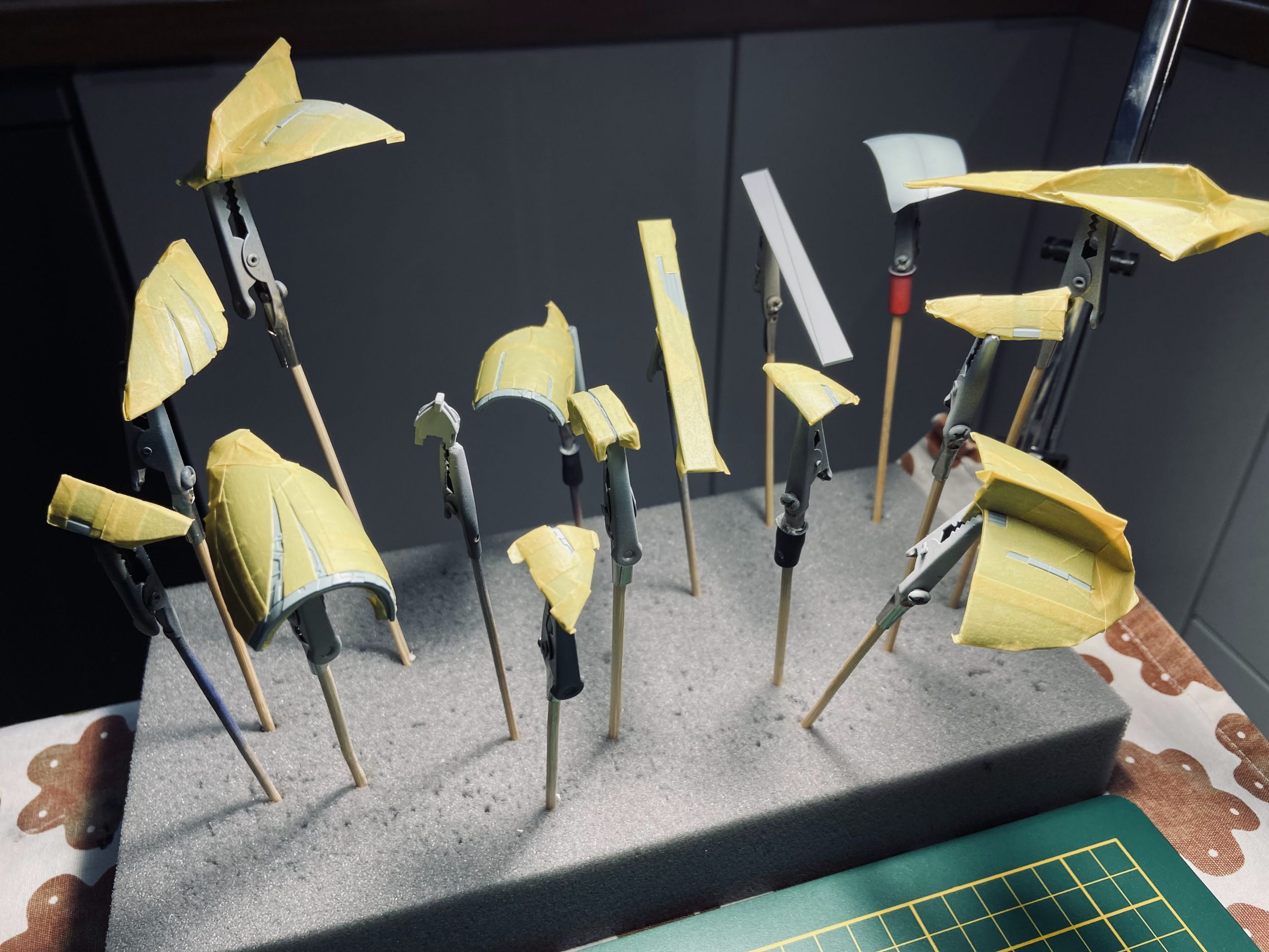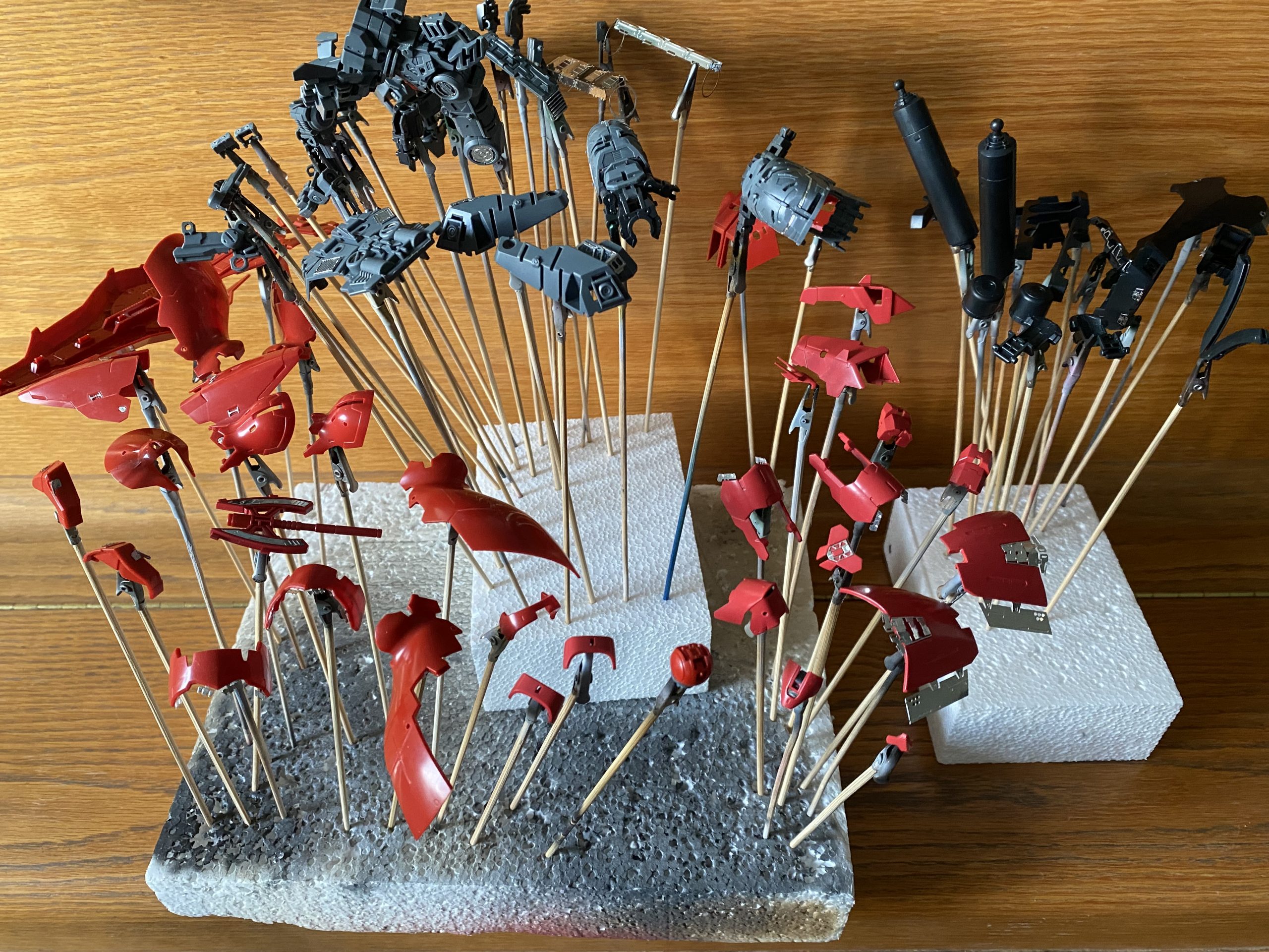 I have set of painting clips. It was fine for my previous buids, as for little Sazabi almost all paints…